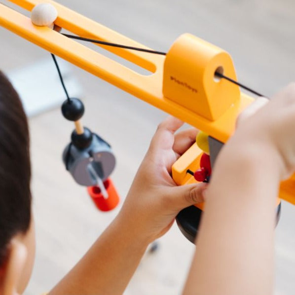- Using the pulley, watch as children move and rotate the crane with building materials as they build the PlanWorld of their imagination