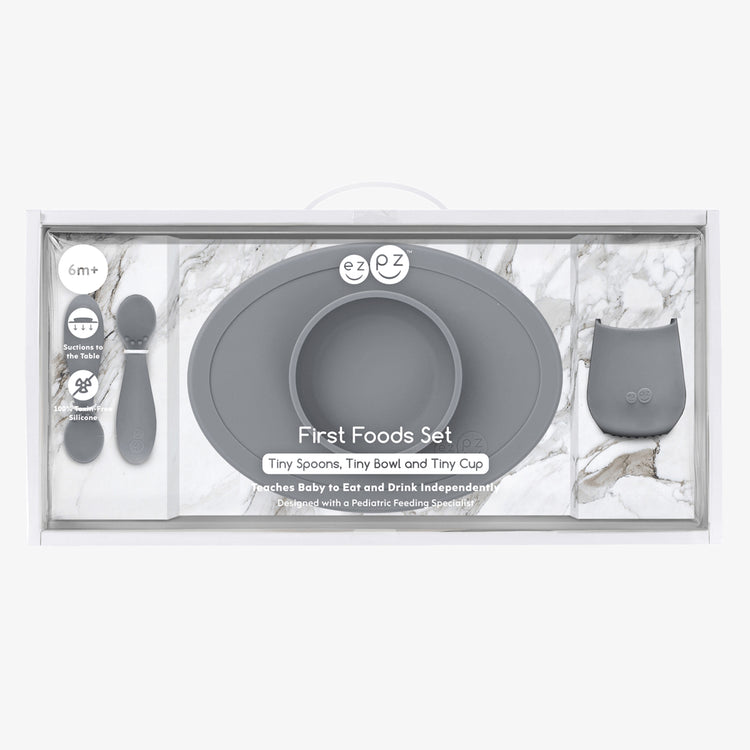 Most parents introduce first foods to their baby at 4-to-6 months of age. This experience can be fun, but it also can be messy, stressful and overwhelming. With the First Foods Set ezpz provides all of the developmental tools you need to set baby up for mealtime milestones – plus calm & confident parents!