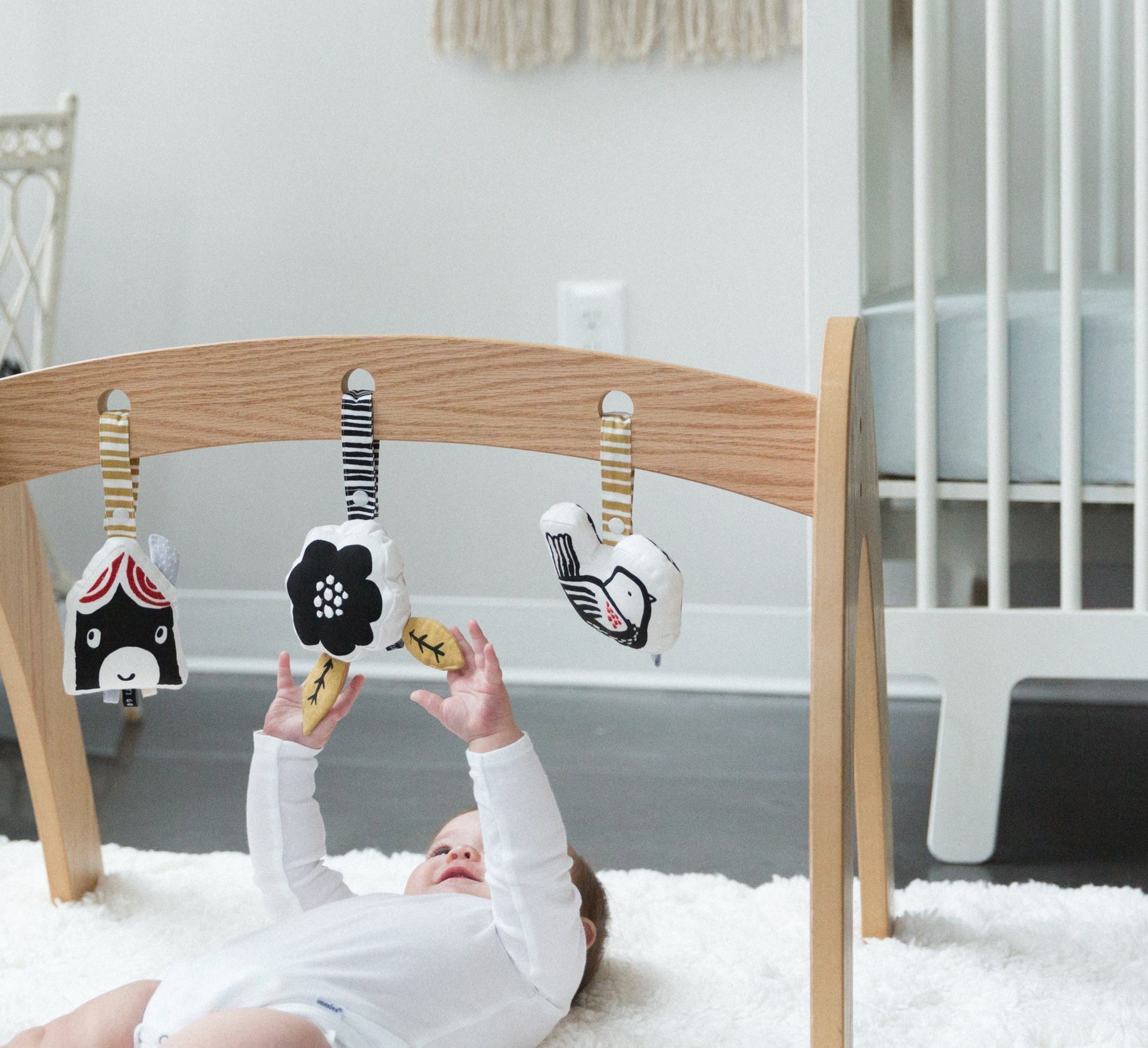 What color is that house? Encourage baby to observe the world around with this house toy that attaches to stroller or car seat. Embroidered roof and crinkly smoke coming from the chimney make this stroller toy super engaging for your little one.
