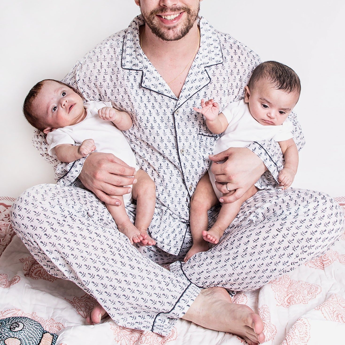 Well, actually the whole family is included! Play matchy match in these timeless prints at home or on vacation. We have coordinating pajamas, loungewear, and sleep bags for newborn through ten year old children, and small through extra large for men and women. See Family Matching for options!
