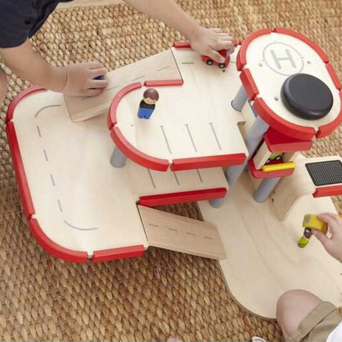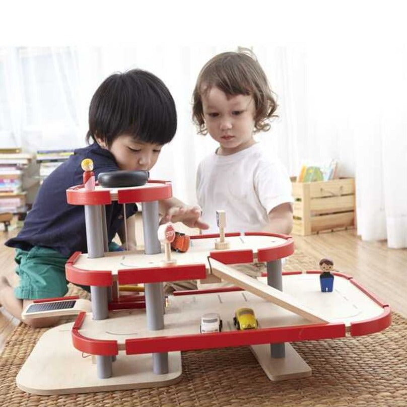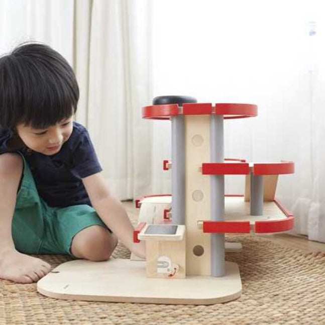 - Watch as a child's imagination takes off as they play with the PlanToys Parking Garage