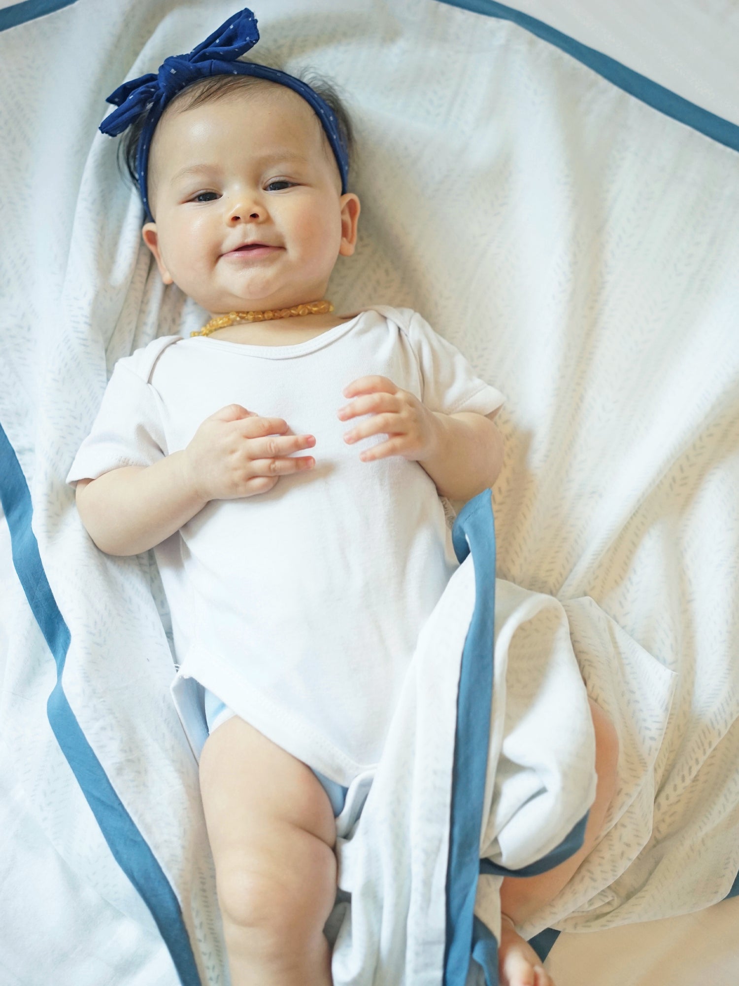Three layers of soft natural cotton sewn together to bring the utmost softness and breathability to your baby’s blanket collection. Features a hand block-printed center layer with natural delicate cotton voile outer layers. Convenient size and lightweight fabric make cuddle time lots of fun at home or on the go!