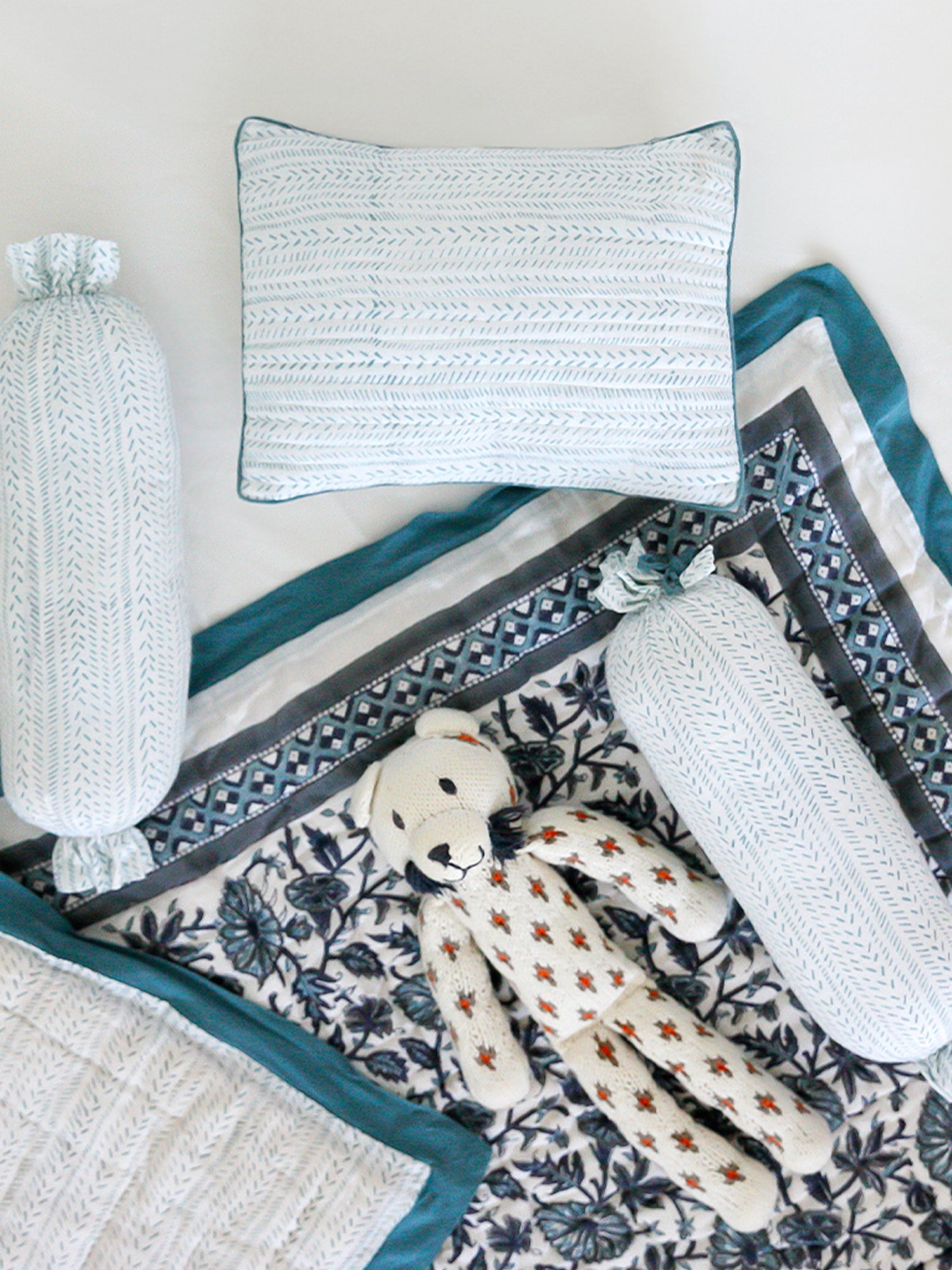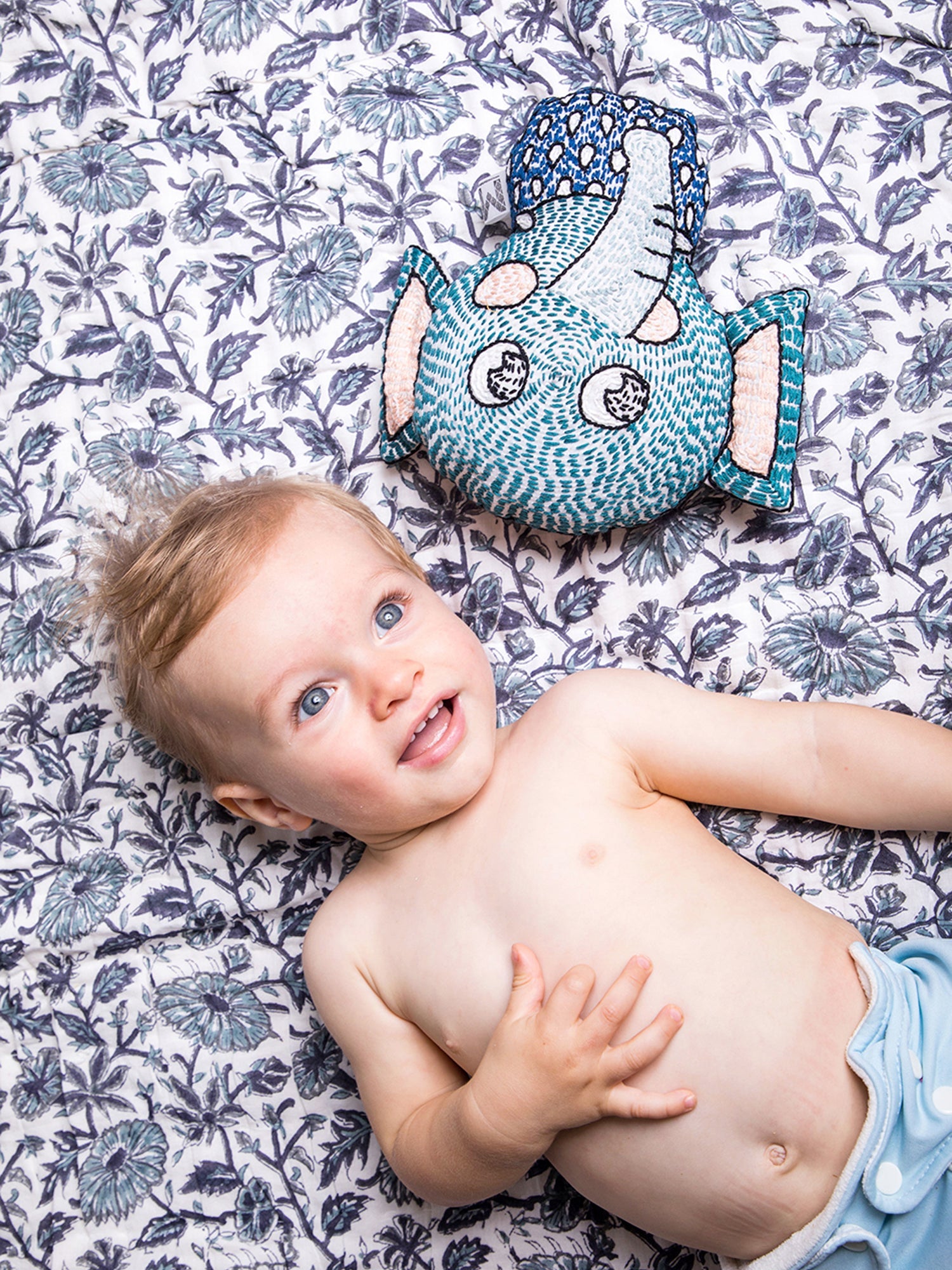 Block-printed using non-toxic dyes on all-natural pure Indian cotton and quilted with 100% cotton inside and out for extra breathability and coziness!