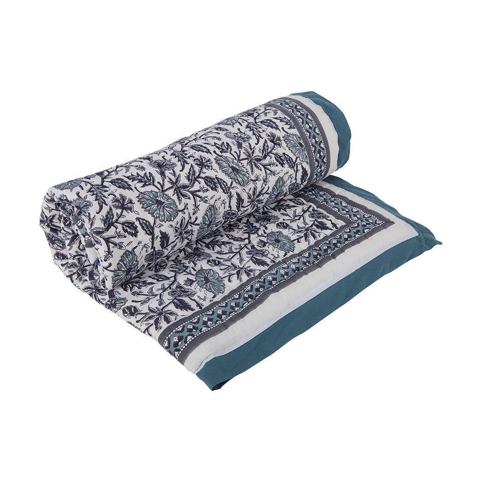 Block-Print Crib Quilt in Provence Blue