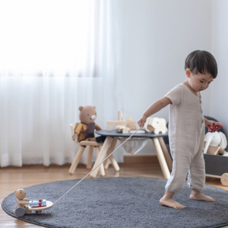 Watch as the talented PlanToys Pull-Along Musical Bear plays music while you pull him alongside you. While in motion, the bear hits a xylophone to make unique musical sounds that stimulate toddlers learning how to walk. If the rope is pulled to the side, the bear will hit the xylophone in different keys. Pull-along toys like these do a great job of encouraging little ones to keep walking and exploring the world on their own two feet. Improve balance, strengthen hand-eye coordination, and watch as gross motor skills develop through play! This wooden bear is the ultimate musical walking companion.