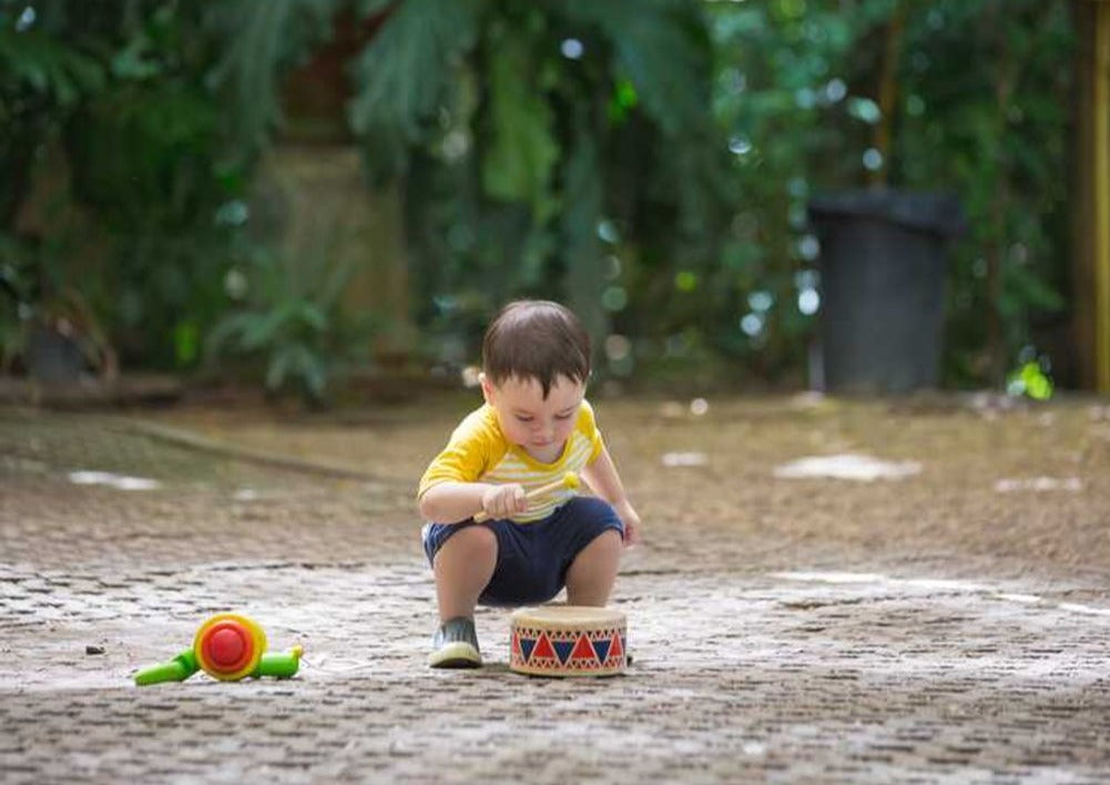 A tympanic drum completed with a drumstick develops children’s spatial perception and arm muscles as well as auditory nerves. The drumstick has a rubber head to soften the sound.