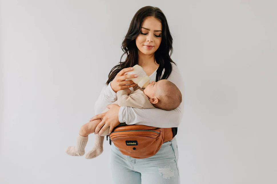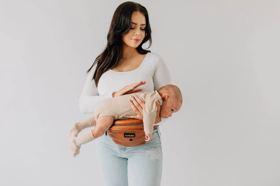 Tushbaby is the only carrier you need from newborn through toddler. It can even be used as a nursing support while at home or on the go, and has a storage pouch roomy enough to stash all the necessities for a day out.