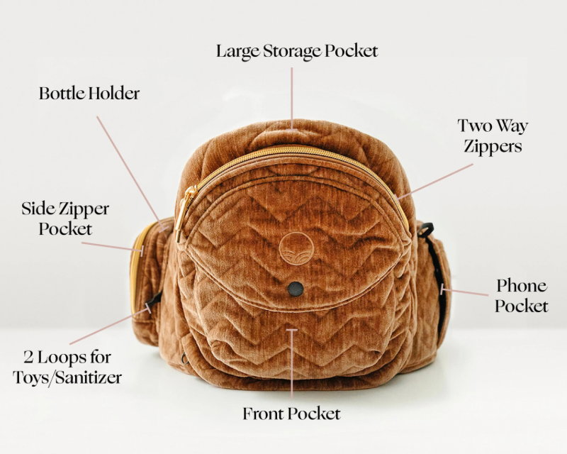 Put diapers and wipes in the storage beneath the seat. Access your keys, phone, and wallet in the side pockets. Attach toys to the loops and tuck bottles in the holder.