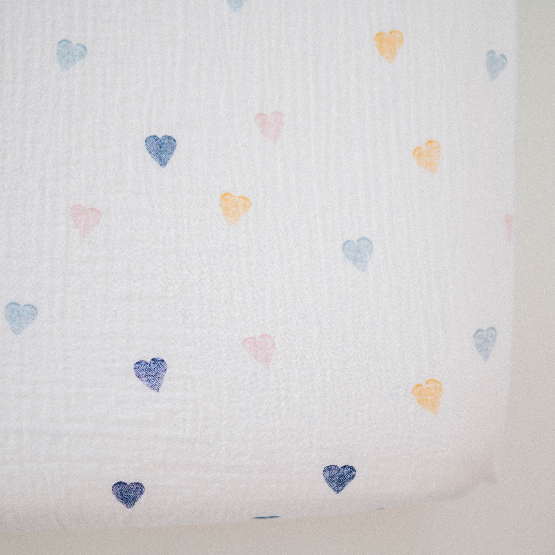 Waterproof Cotton Crib Sheet - Muslin Hearts